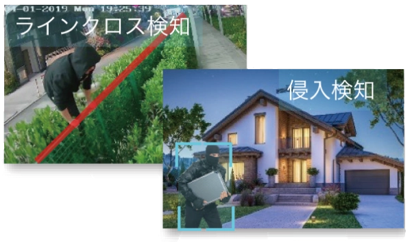 ラインクロスや侵入検知など用途に合わせた複数のアラート方法が設定可能。