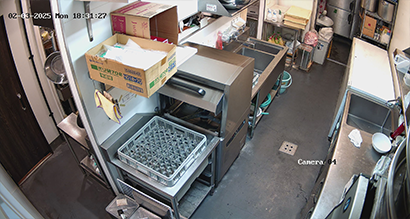 券売機の上、事務所、キッチンにそれぞれ設置したことで、不審な動きの早期発見だけでなく、スタッフの動線や作業の見直しにも役立っています。